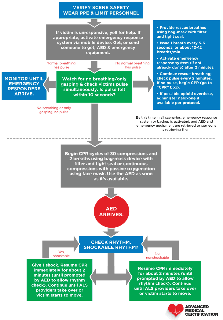 Adult BLS Cardiac Arrest Algorithm for Suspected or Confirmed COVID-19 Patients