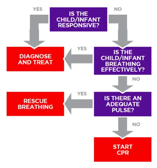 While there are various causes for a child or an infant to become unresponsive, the central issues that need to be addressed include keeping blood pumping through the vasculature (perfusion) and supplying oxygen to the lungs (oxygenation). When the child or infant is experiencing poor perfusion and oxygenation, CPR manually takes over for the heart and lungs. If they are still adequately maintaining perfusion and oxygenation but are unresponsive, then rapid diagnosis and treatment may be possible without CPR.