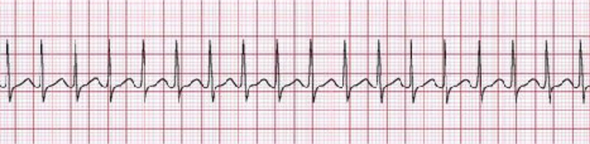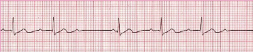 Rhythm strip demonstrates the following:
