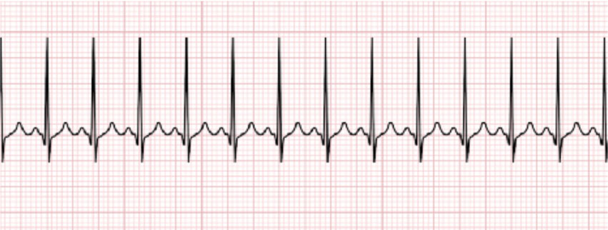 Heart rate is 110, BP 130/60, and repeat rhythm strip demonstrates the following: