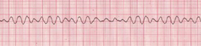 This demonstrates ventricular tachycardia without a pulse. As with ventricular fibrillation, the best initial treatment is early defibrillation, followed by CPR, administration of epinephrine and possibly amiodarone as per algorithm.