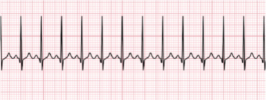 Repeat vitals: P: 160, BP: 92/54. You now see the following rhythm on the monitor: